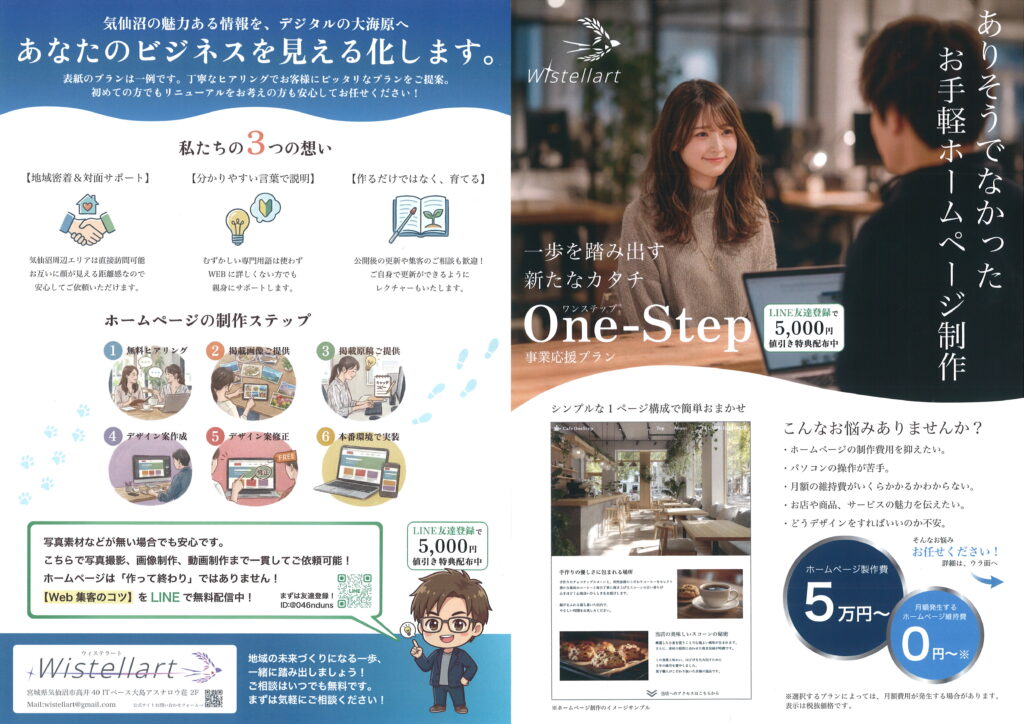 気仙沼ビズでサポートさせていただいている「気仙沼デザイン」さんと「Wistellart(ウィステラ―ト)」さんのそれぞれが、地域の事業者さんに向けた、よりホームページ制作がしやすいプランを導入しました。